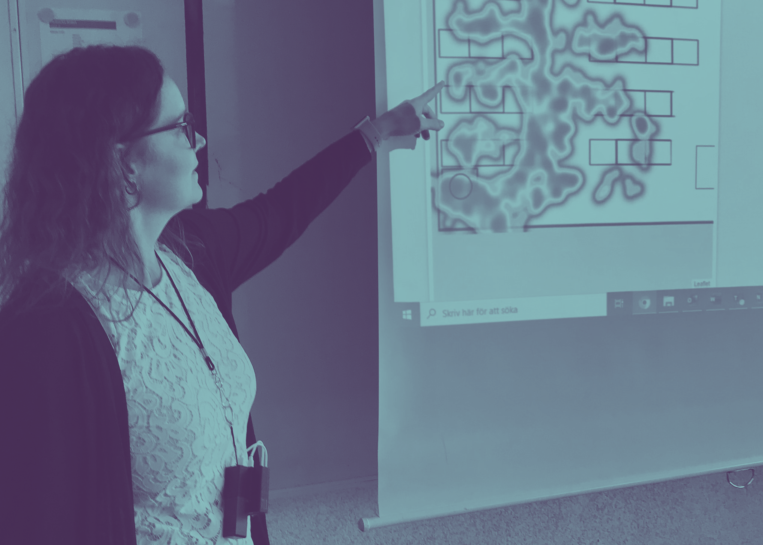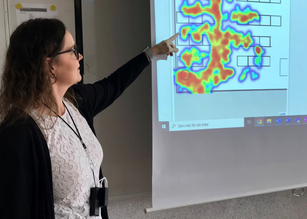 Informationen från sensorerna samlades i en databas och visualiserades i form av en heatmap. Läraren kunde på så vis gå in och spela upp sin lektion i efterhand och se och utvärdera sina rörelsemönster.